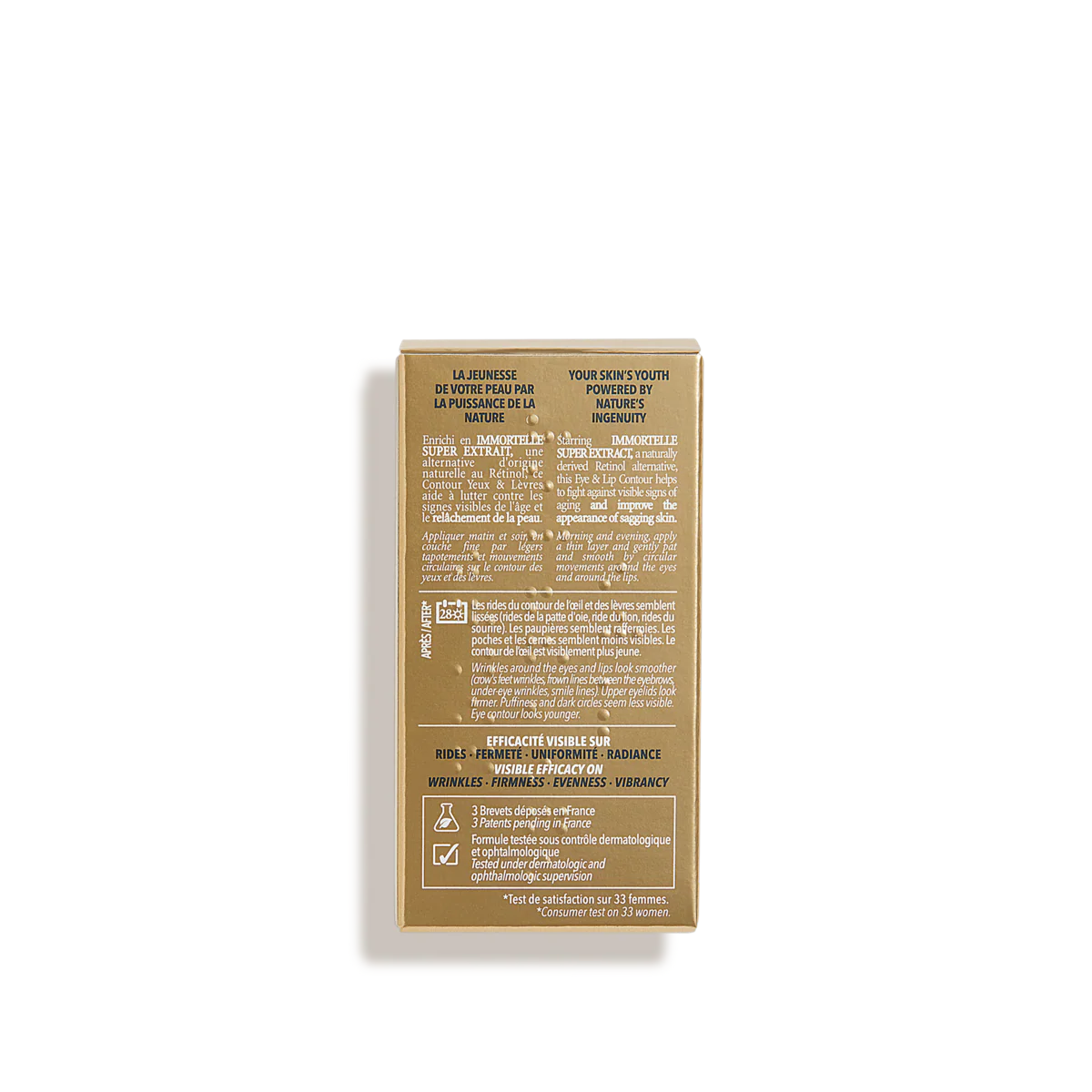 Starring Immortelle Super Extract - a 100% natural alternative to Retinol -and 4 Immortelle extracts, the 3 patented Immortelle Divine Eye & Lips Contour is a complete youth care that acts at the heart of cells to visibly correct all signs of ageing around the eye and lip areas.
